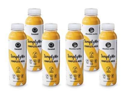 SimplyMix ready-to-drink je tvůj nový parťák pro každý den, když potřebuješ rychlé, ale nutričně vyvážené jídlo. Ať už spěcháš do práce, na trénink nebo na schůzku, s tímhle proteinovým drinkem víš, že děláš pro své tělo to nejlepší. Vysoký obsah bílkovin tě zasytí na 3 až 5 hodin, a navíc tě nakopne energií, kterou potřebuješ. Každá láhev obsahuje 20 % denní dávky vitamínů a minerálů, včetně vitamínu A, C, E, B-komplexu, vápníku, hořčíku a železa, takže tvoje tělo dostane všechno, co si zaslouží. A abys byl ještě silnější, přidali jsme do drinku extra rostliny, jako Ashwagandhu a Macu, a nezbytné Omega-3 mastné kyseliny. Vybrat si můžeš ze dvou skvělých příchutí – kokos a čokoláda-vanilka. Navíc je 100 % vegan, bez lepku, s certifikací V-label. Rychlé, chutné a zdravé – to je SimplyMix ready-to-drink!